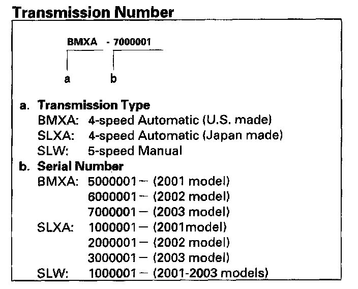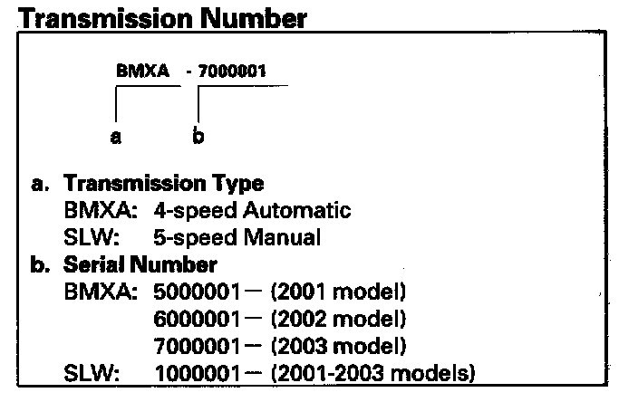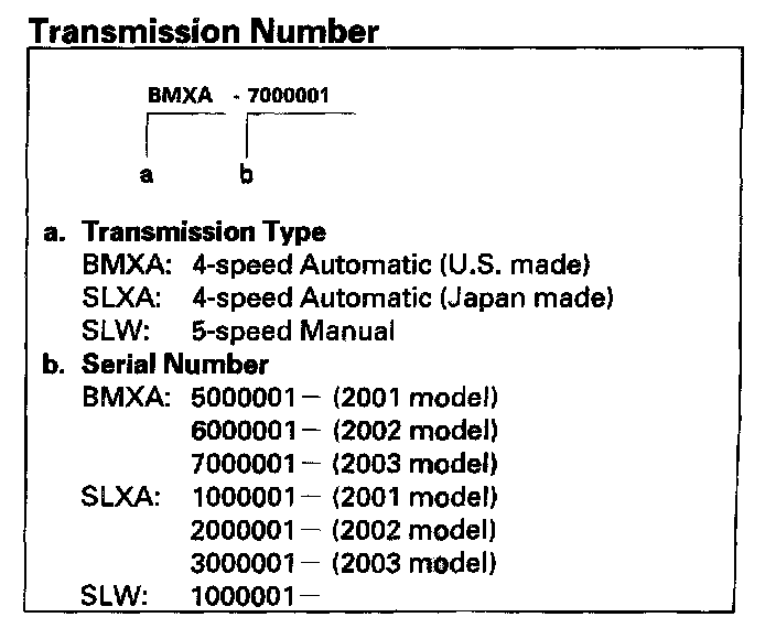 Transmission Number - U.S Model 2-door: