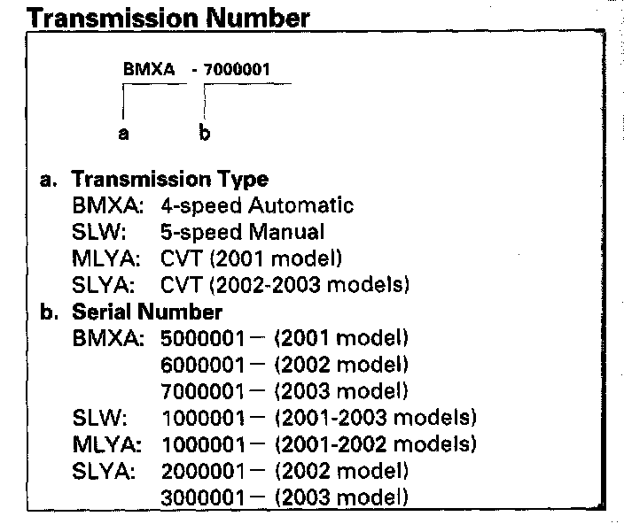 Transmission Number - Canada Model 2-door: