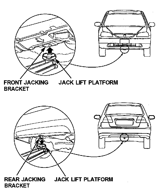 Lift and Support PointsNOTE: If you are going to remove heavy components such as suspension or the fuel tank from the rear of the vehicle, first support the front of the vehicle with tall safety stands. When substantial weight is removed from the rear of the vehicle, the center of gravity can change and cause the vehicle to tip forward on the hoist.