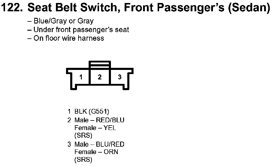 122. Seat Belt Switch, Front Passenger's (Sedan):