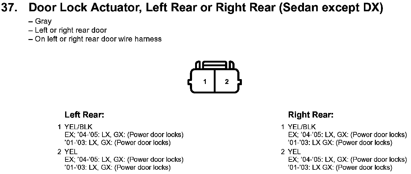 37. Door Lock Actuator, Left Rear Or Right Rear (Sedan Except DX):