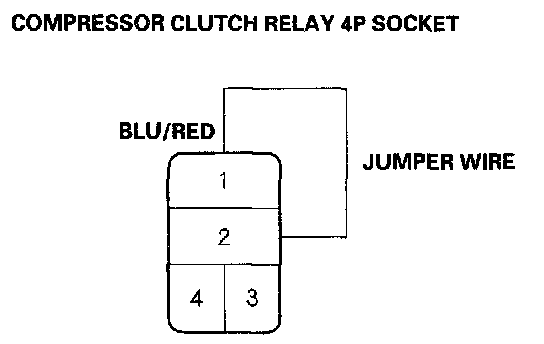 5. Connect the No.1 and No.2 terminals of the compressor clutch relay 4P socket with a jumper wire.