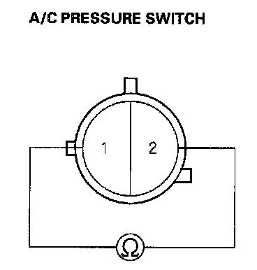 5. Check for continuity between the No.1 and No.2 terminals of the A/C pressure switch.