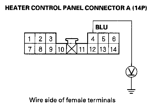 9. Measure the voltage between the No.4 terminal of heater control panel connector A (14P) and body ground.