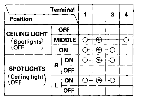 Ceiling Light/Spotlights Test/Replacement - With Moonroof1. Turn the ceiling light/spotlights switches OFF.
