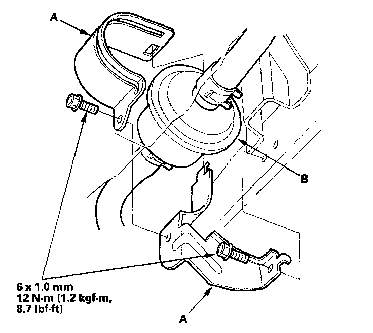 Install the ATF filter brackets (A) on the ATF filter (B).
