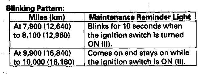 Maintenance Required Lamp/Indicator
