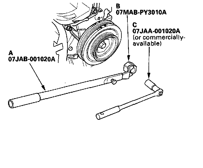12. Remove the bolt with a heavy duty 19 mm socket (C) and breaker bar.
