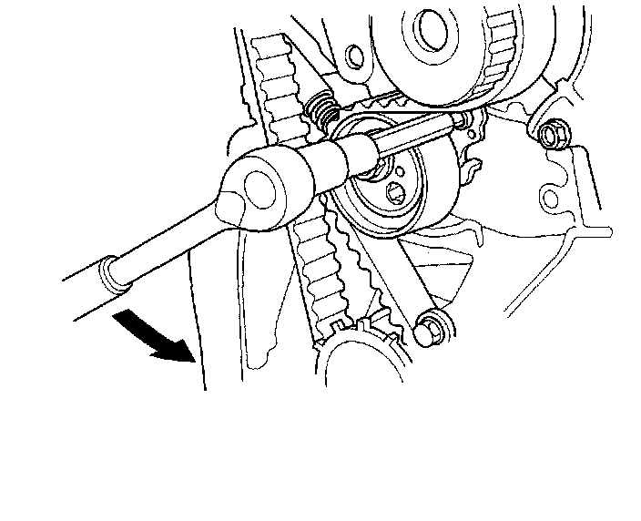 20. Move the auto-tensioner to remove tension from the timing belt, then remove the timing belt.