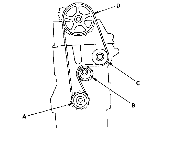 4. Install the timing belt in a counterclockwise sequence, starting with the drive pulley.