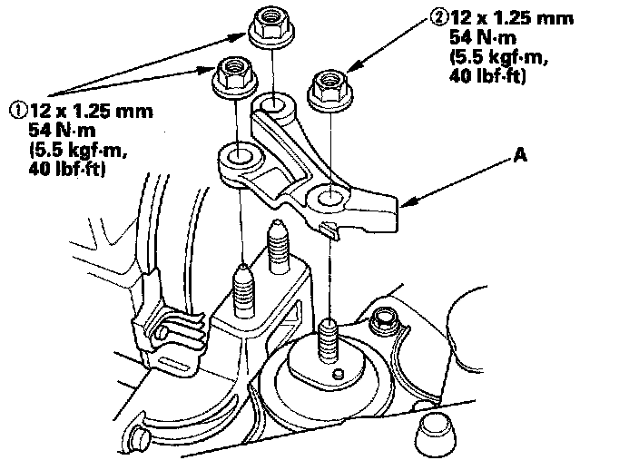 17. Install the upper bracket (A), then tighten the nuts in the numbered sequence shown.