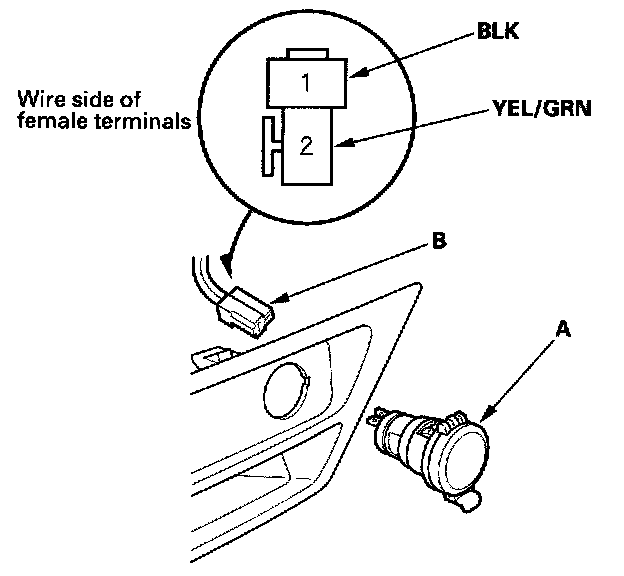 2. Disconnect the 2P connector (B) from the socket.