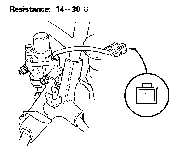 3. Measure resistance between the VTEC solenoid valve connector terminal No.1 and body ground.