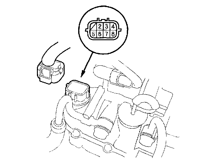 4. Measure CVT start clutch pressure control valve assembly resistance between terminals No. 4 and No. 8.