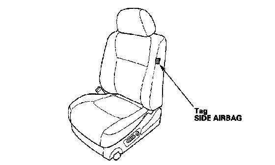 Seats with side airbags have a tag attached to the seat-back. Because the component parts (seat-back cover, cushion, etc.) of seats with and without airbags are different, make sure you install only the correct replacement parts.
