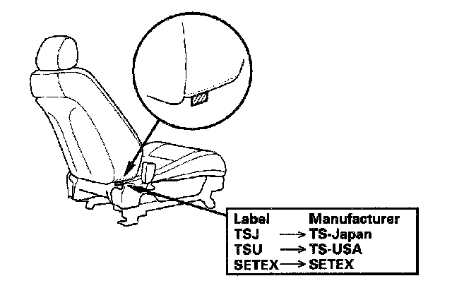 Because the seats are made by more than one manufacturer, make sure you replace any seat components (seat-back cover, frame, etc.) with the correct parts. The name of the seat manufacturer is indicated on the seat-back.