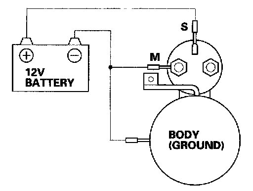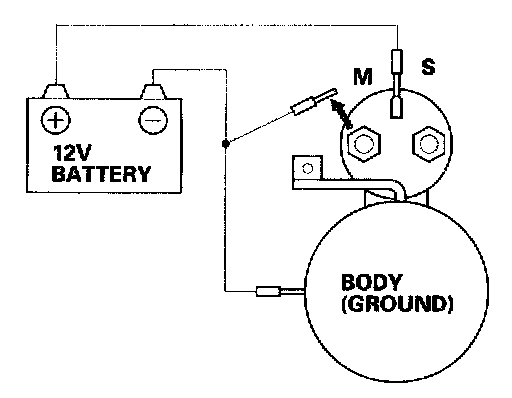 4. Disconnect the battery from the M terminal. If the pinion does not retract, the hold-in coil of the solenoid is working properly.