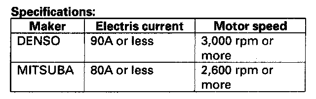 8. If the electric current and motor speed meet the specifications when the battery voltage is at 11.5 V, the starter is working properly.