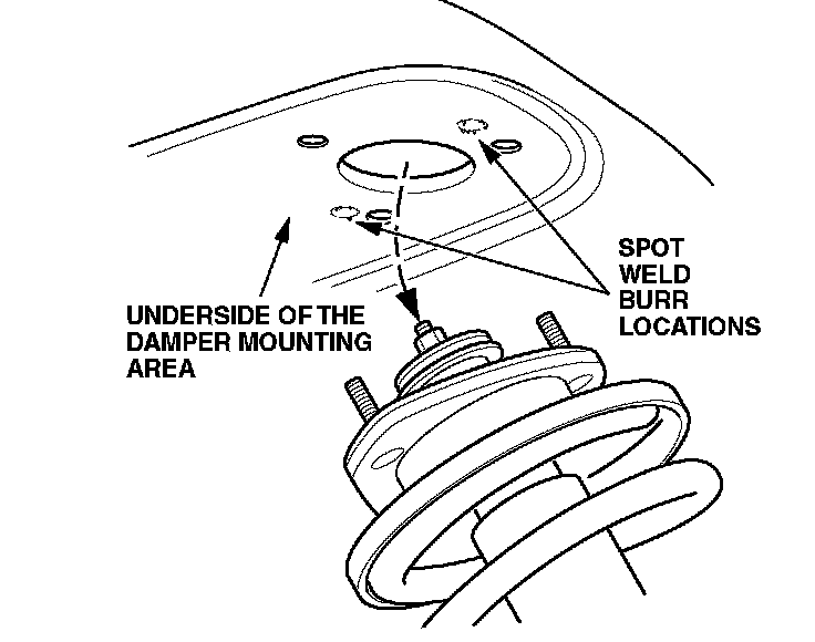 The exact location of spot weld burrs may vary. Be sure to check the damper mounting area completely.