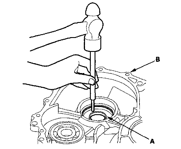 2. Remove the oil seal (A) from the flywheel housing (B).