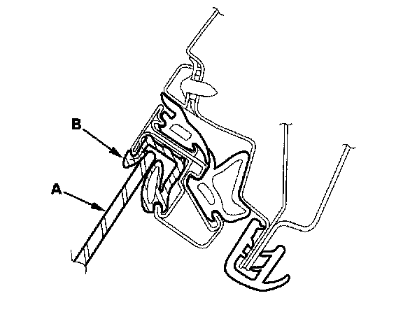 6. Raise the glass fully, and check for gaps. Check that the glass (A) contacts the glass run channel (B) evenly.
