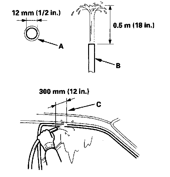 - Use a 12 mm (1/2 in) diameter hose (A).