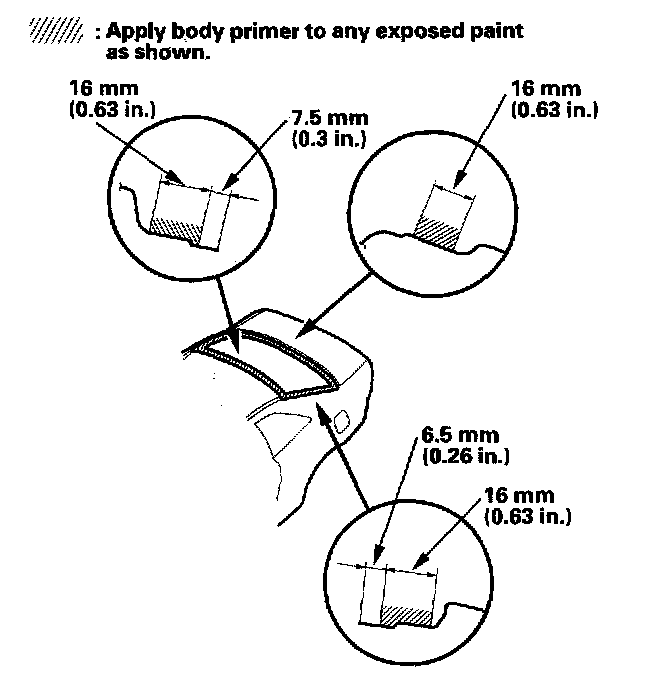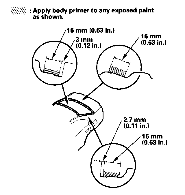 - Do NOT apply body primer to any remaining original adhesive on the flange.