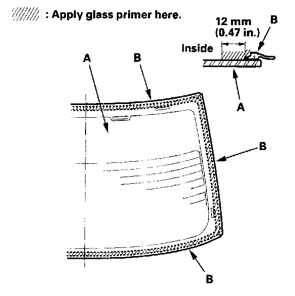 - Do not apply body primer to the rear window, and do not get body and glass primer sponges mixed up.