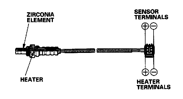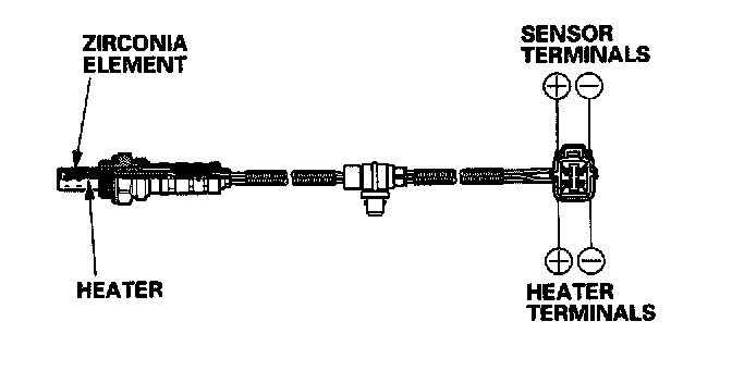 The secondary HO(2)S detects the oxygen content in the exhaust gas downstream of the three way catalytic converter (TWC) and sends signals to the ECM/PCM which varies the duration of fuel injection accordingly. To stabilize its output, the sensor has an internal heater. The secondary HO(2)S is installed in the TWC.