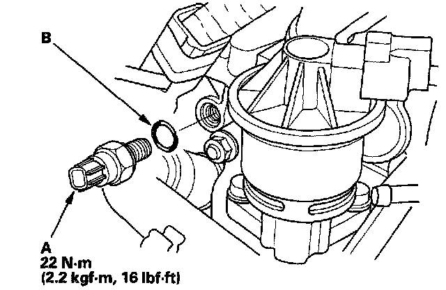 5. Install the VTEC oil pressure switch using a new O-ring (B).