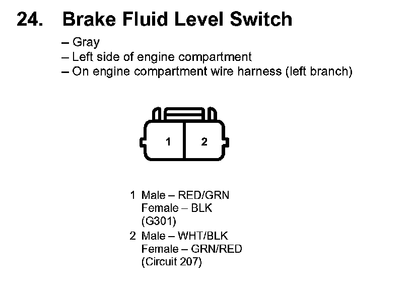 24. Brake Fluid Level Switch: