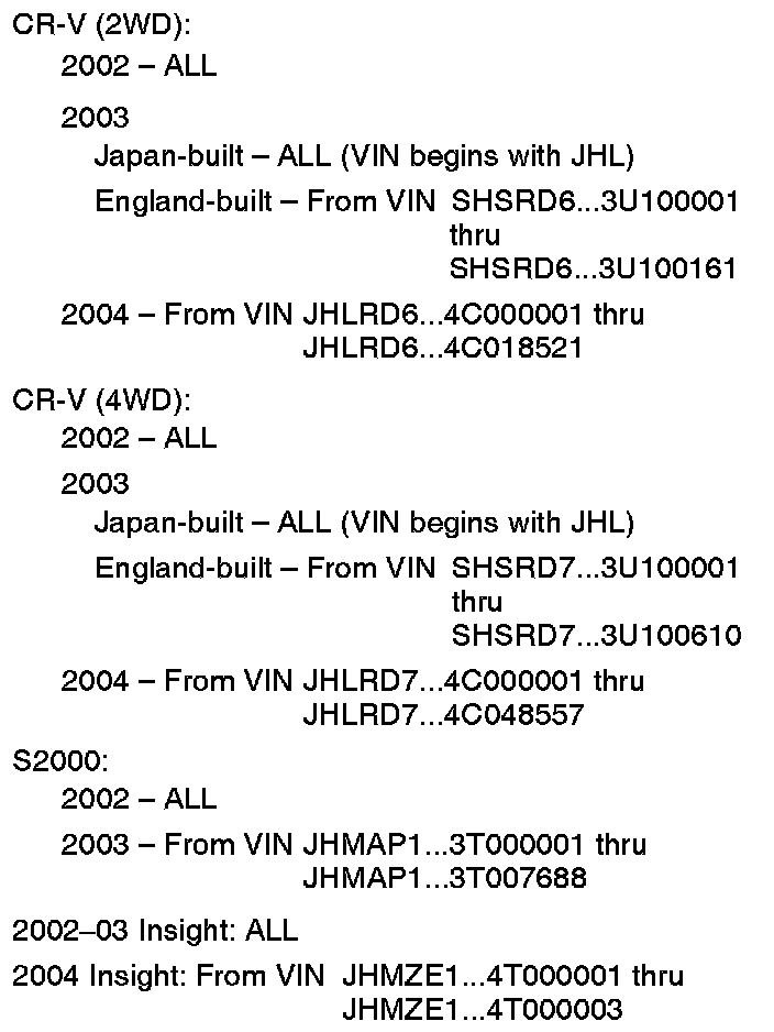 See VEHICLES AFFECTED