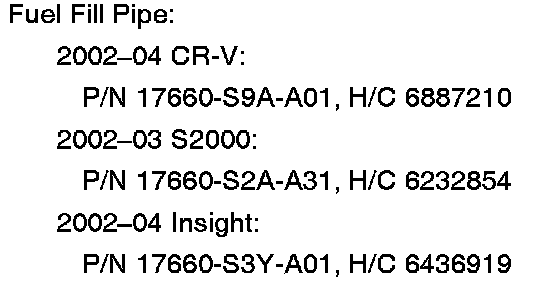 Failed Part: P/N 17660-S9A-A01