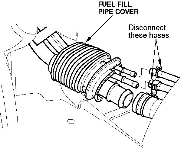 4. Disconnect the fuel fill pipe hoses from the fuel fill pipe.