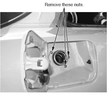 3. Remove the fuel fill pipe attachment nuts.