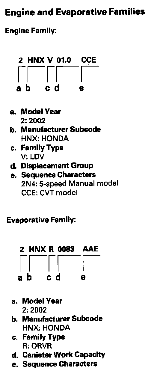 Engine And Evaporative Families: