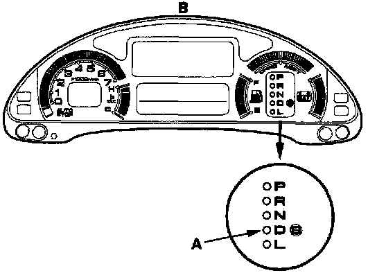 How to Check for DTCs with the Honda PGM Tester/Scan ToolWhen the transmission control module (TCM) senses an abnormality in the input or output systems, the [D] indicator light (A) in the gauge assembly will usually blink and/or the Malfunction Indicator Lamp (MIL) may come on.