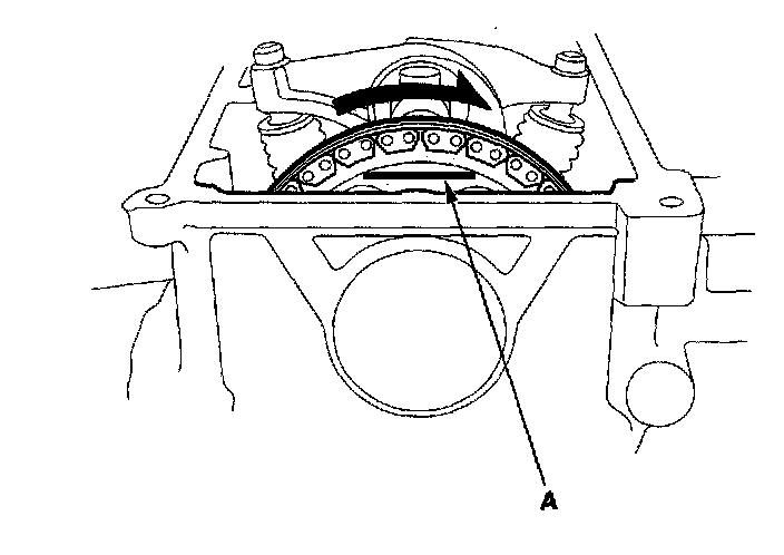 8. Rotate the crankshaft 240° clockwise (camshaft sprocket turn 120°). The second TDC mark (A) should be aligned with the cylinder head surface.