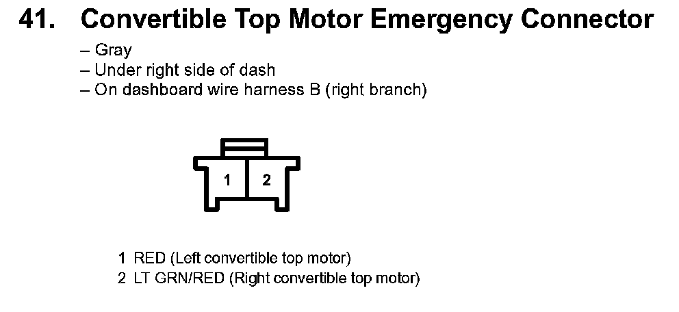 41. Convertible Top Motor Emergency Connector:
