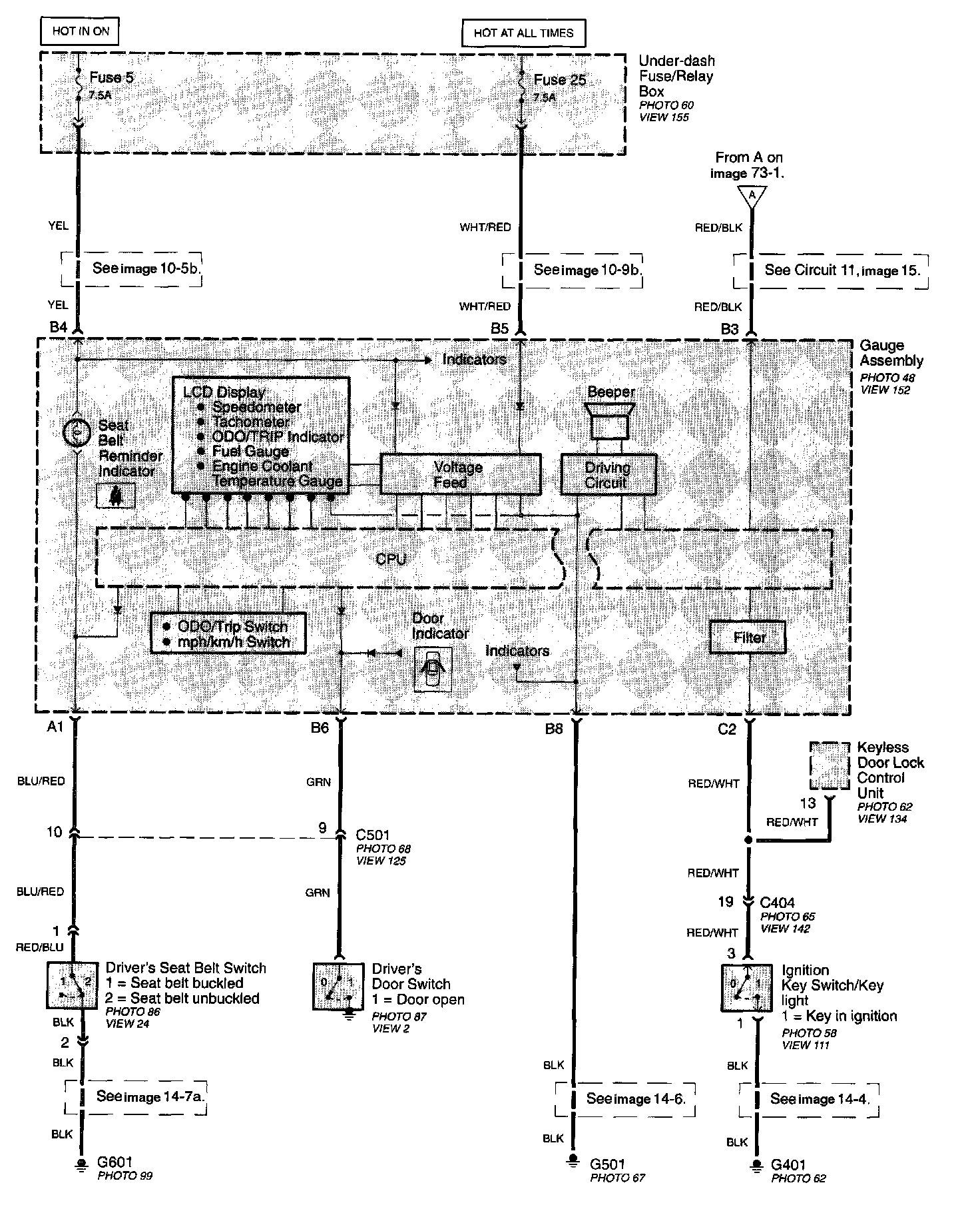 Trip Reset, Light-on, Key-in, And Seat Belt Reminders Image 73-1: