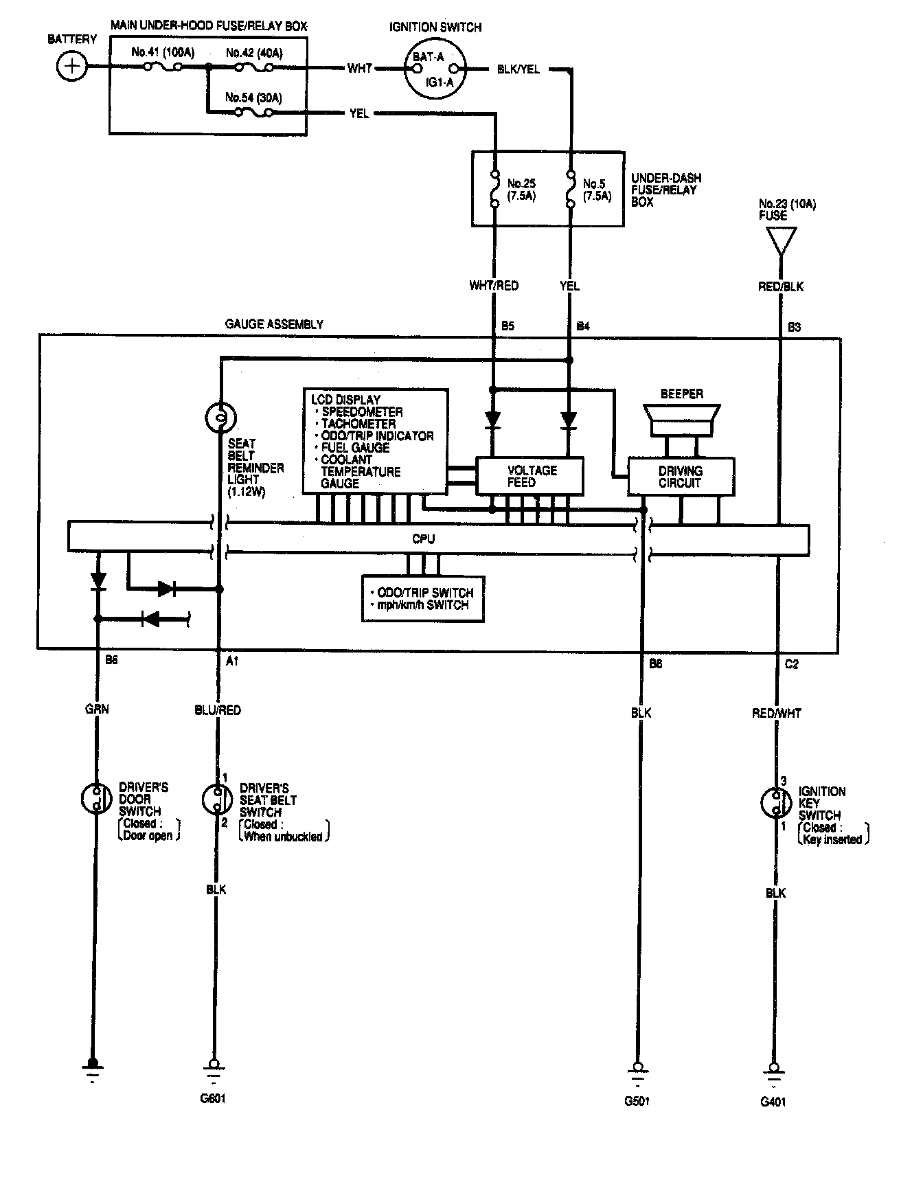 Lights-on, Key-in, Seat Belt Reminder System - Circuit Diagram:
