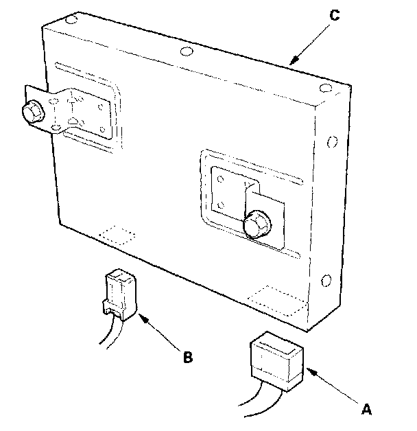 4. Disconnect the 14P connector (A) and 2P connector (B) from the XM receiver (C).