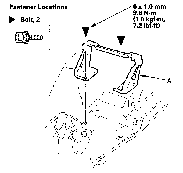 6. Remove the bolts securing the change lever bracket or select lever bracket (A).