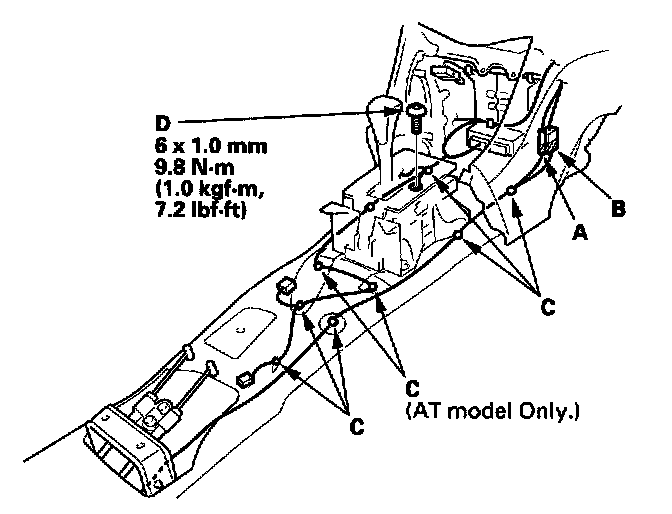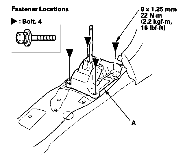 4. M/T Model: Remove the bolts, then remove the center console bracket (A).