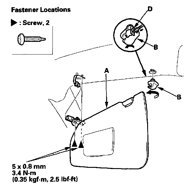 3. From both sides, remove the sunvisor (A) and holder (B).