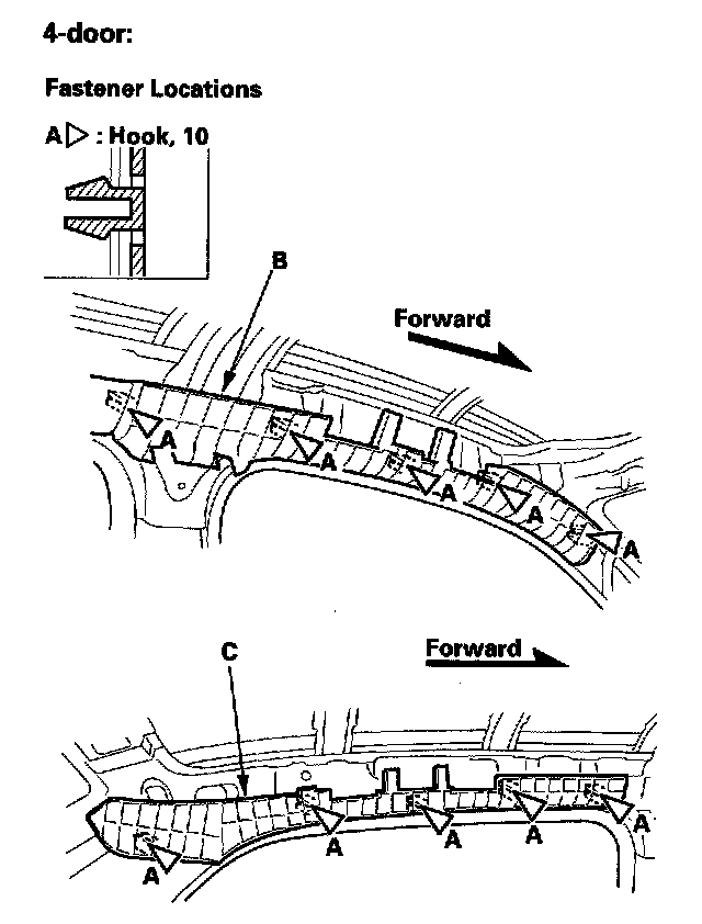- B-pillar upper trim, both sides, 2-door, 4-door.