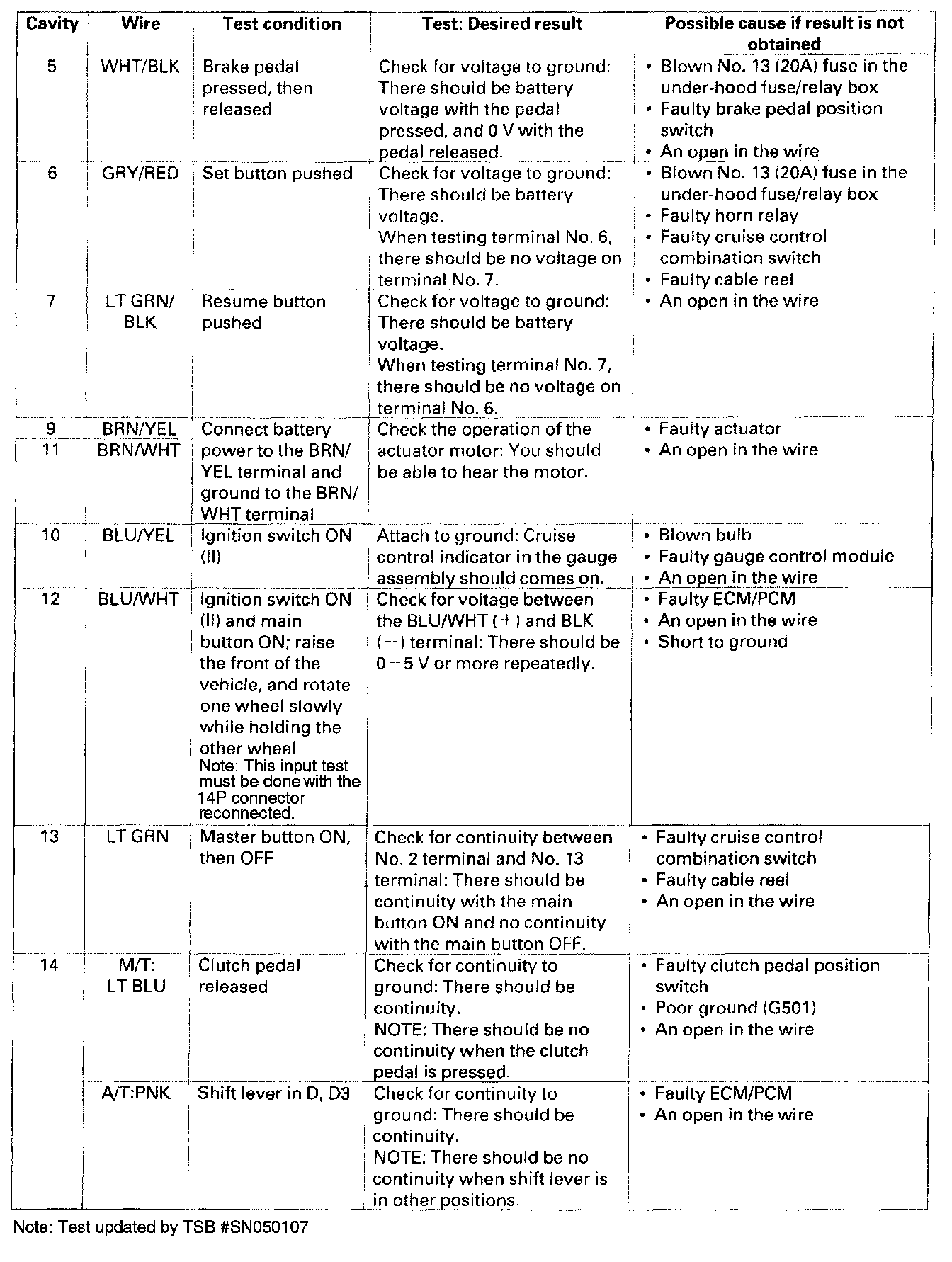 - If all the input tests prove OK, the cruise control unit may by faulty. Substitute a know-good cruise control unit and retest. If the system works properly, replace the cruise control unit.