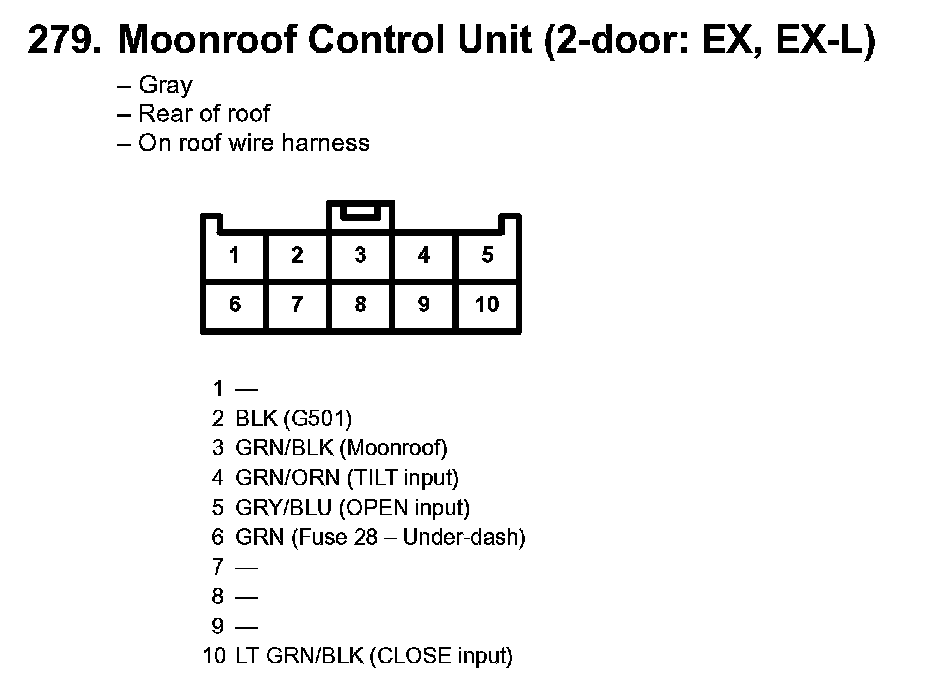 279. Moonroof Control Unit (2-door: EX, EX-L):