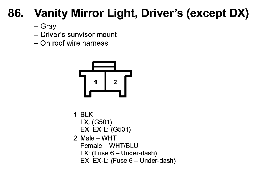 86. Vanity Mirror Light, Driver's (except DX):