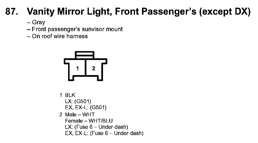 87. Vanity Mirror Light, Front Passenger's (except DX):